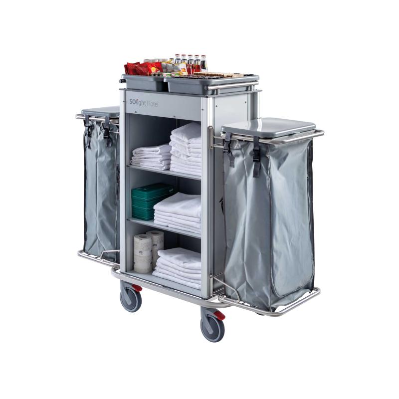 Carrello della linea HouseKeeping, piccolo ma capiente, adattabile ad ogni esigenza con l’utilizzo degli accessori dedicati.