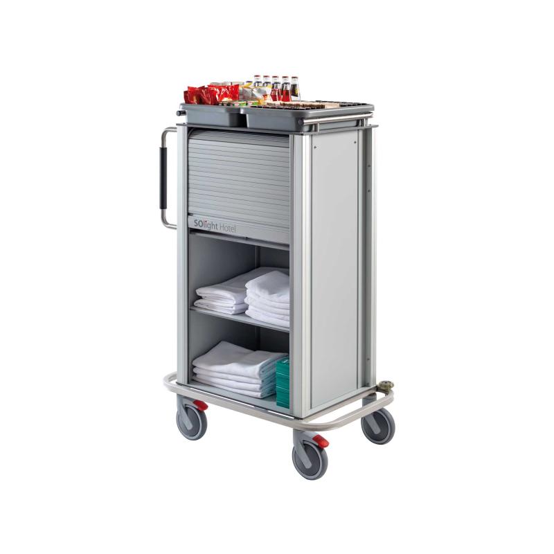 La serranda scorrevole permette una completa chiusura del carrello permettendo, così, di nasconderne il contenuto.