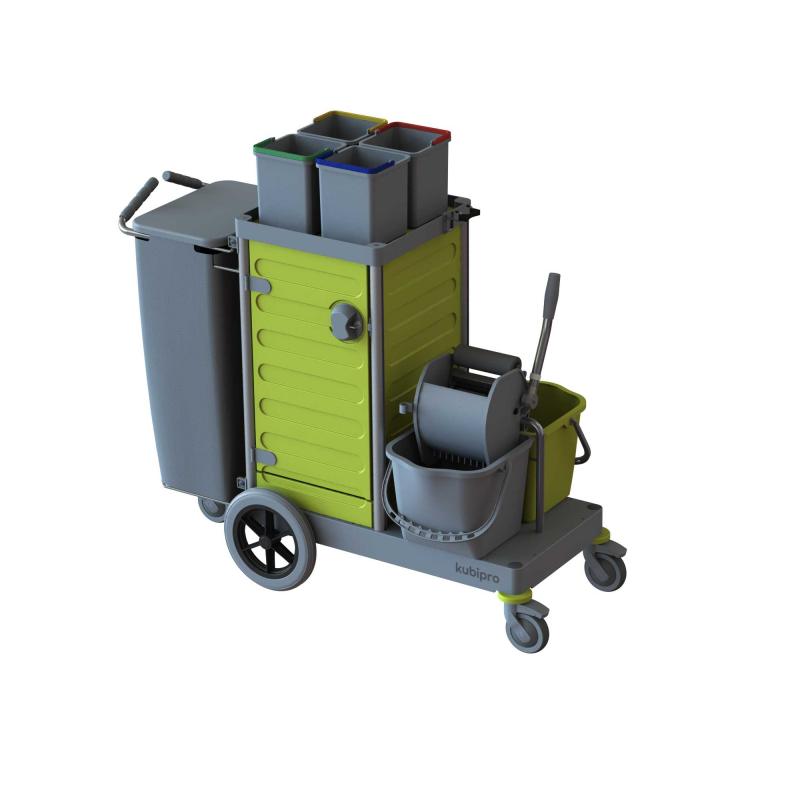 Dotato di serie di sacco in tela con coperchio e di quattro secchi per l’implementazione del codice colore.