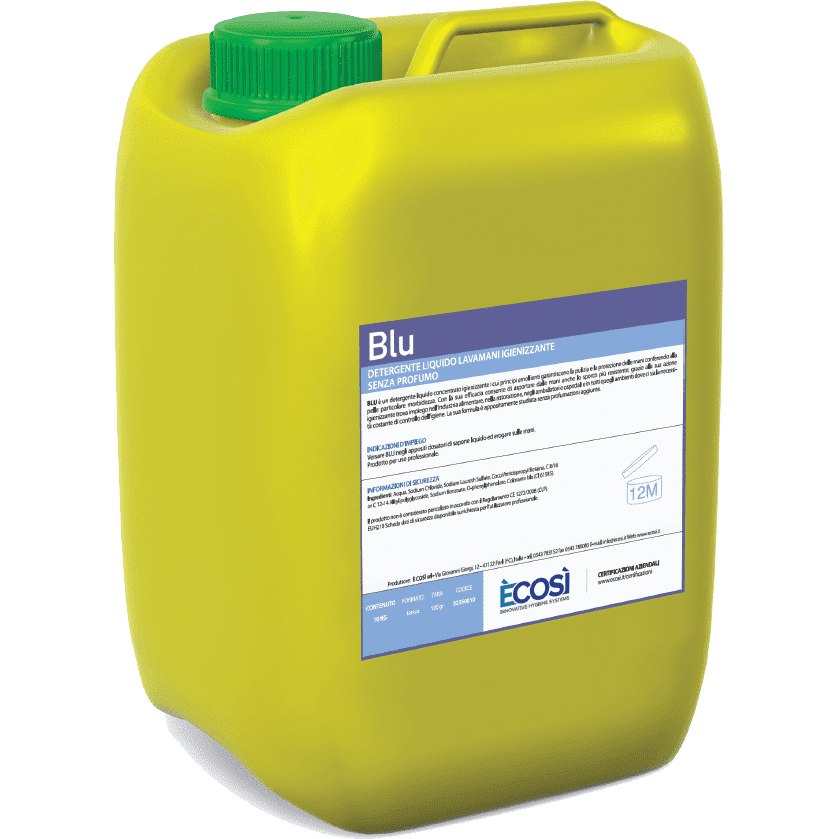 BLU è un detergente liquido concentrato per il lavaggio e l’igienizzazione delle mani. Trova impiego nell’industria alimentare, nella ristorazione, in ambulatori, ospedali e in tutti quegli ambienti dove ci sia la necessità costante di controllo dell’igiene. La sua formula è appositamente studiata senza profumazioni aggiunte.
