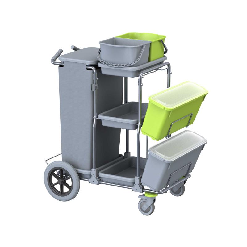Il carrello SMART 5 TOP BIG-FOOT inox si è subito affermato tra i più apprezzati carrelli di servizio con sistema di lavaggio con frange pre-impregnate.
