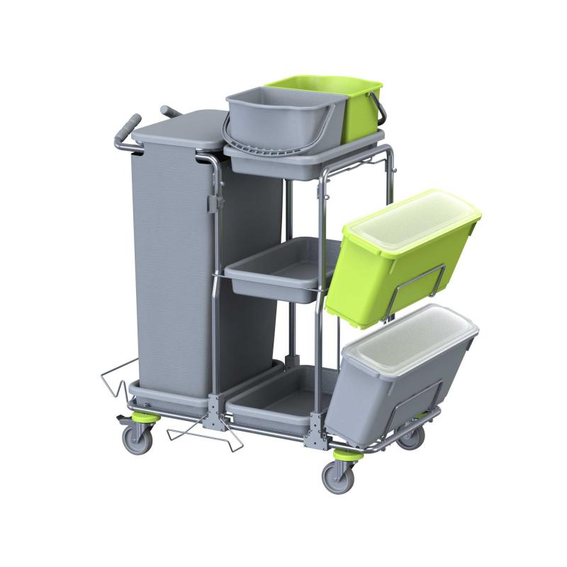 Il carrello SMART 5 TOP inox si è subito affermato tra i più apprezzati carrelli di servizio con sistema di lavaggio con frange pre-impregnate.